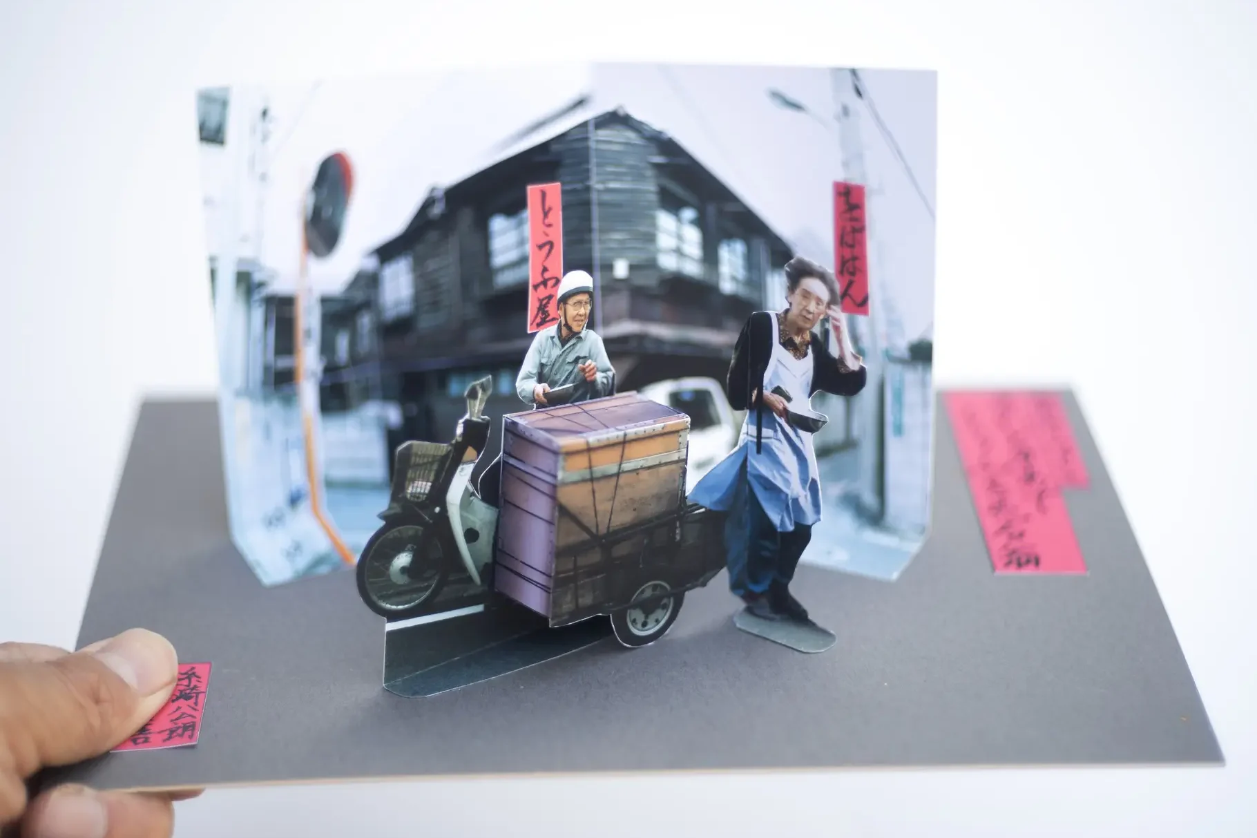 1990年代の初めから糸崎公朗により始められたフォトモの技法ですが、アートの歴史を調べると実はマルセル・デュシャンが1935年にフォトモの原型のような作品を制作していたり、日本の江戸時代にフォトモにそっくりの「立版古」という3D浮世絵があったり、そのようなアートの歴史の必然の上に、フォトモという表現が位置していることがわかるのです。